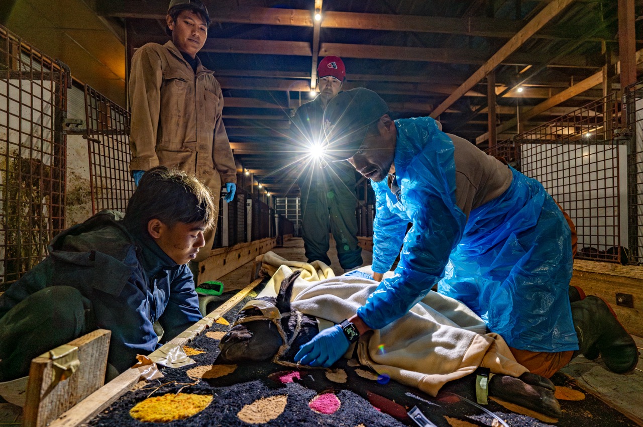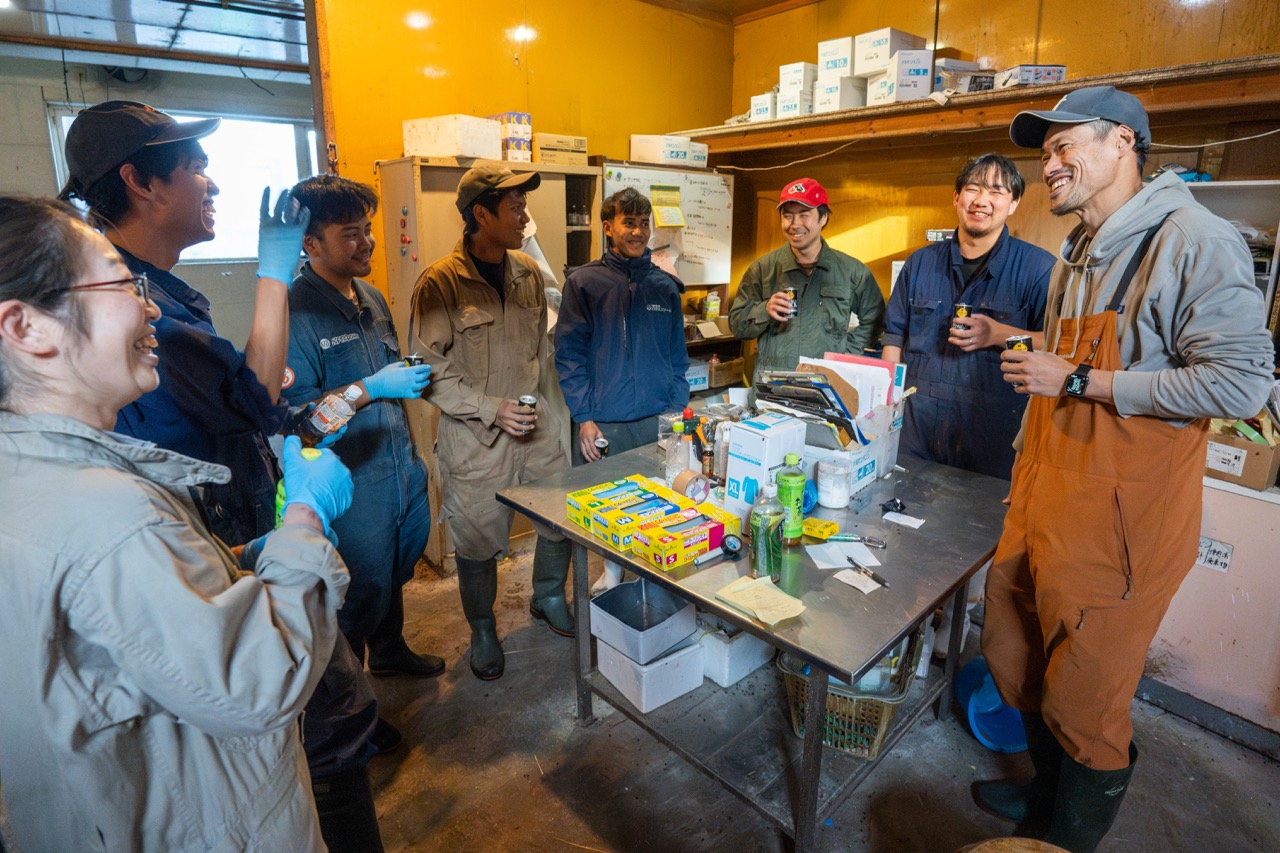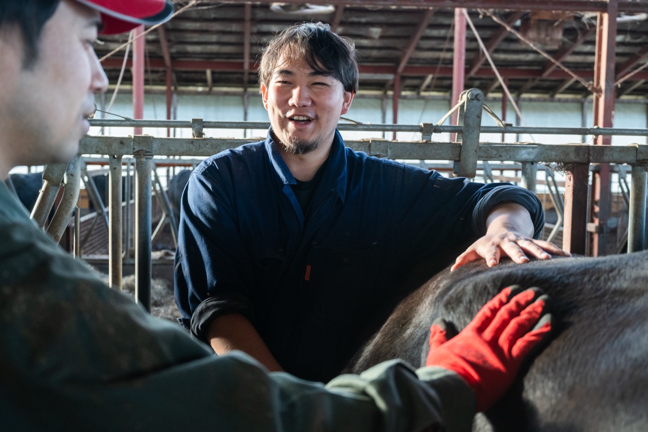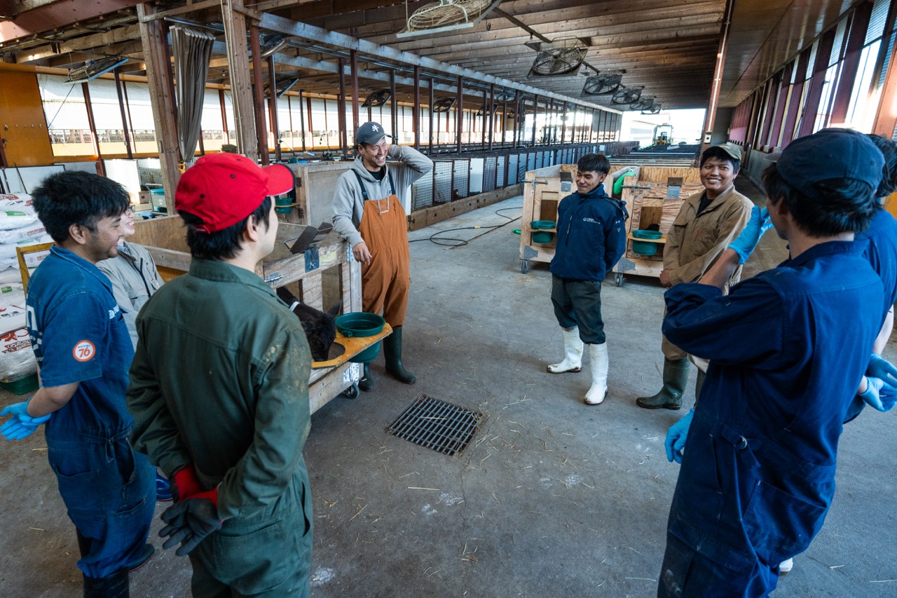 毎朝のミーティングにも参加させていただき、共有事項を確認します。畜産の現場は個人経営が多く、体制整備が課題になることが多いですが、コスモス様では制度や働き方へのこだわりが体系化されており、指示も明確で、若いメンバーが力を発揮できる環境が整っている。チームワークを活かした風通しの良い経営で、私たちにとっても学びが多い現場です。
